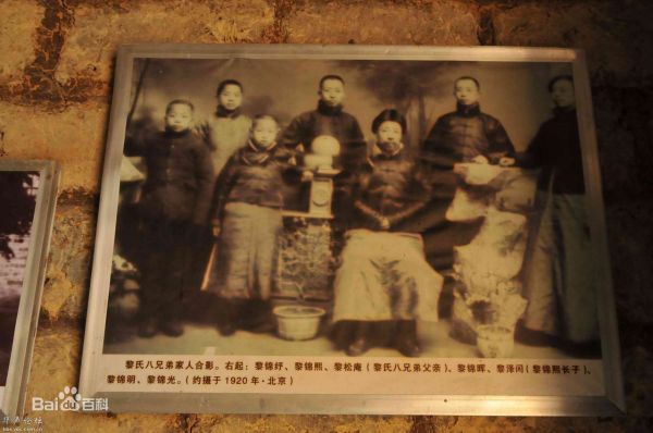 “黎氏八骏”指黎锦熙、黎锦晖、黎锦曜、黎锦纾、黎锦炯、黎锦明、黎锦光、黎锦扬。湖南省湘潭县中路铺镇南岳衡山支脉晓霞山石潭坝乡菱角村长塘组,这是一个不到10户人居住的小村落。19世纪末20世纪初,这里曾诞生了为我国文化、科学事业作出过重要贡献的黎氏八兄弟,人称“黎氏八骏”。(一代国画宗师齐白石,则诞生于晓霞山东麓之星斗塘。)