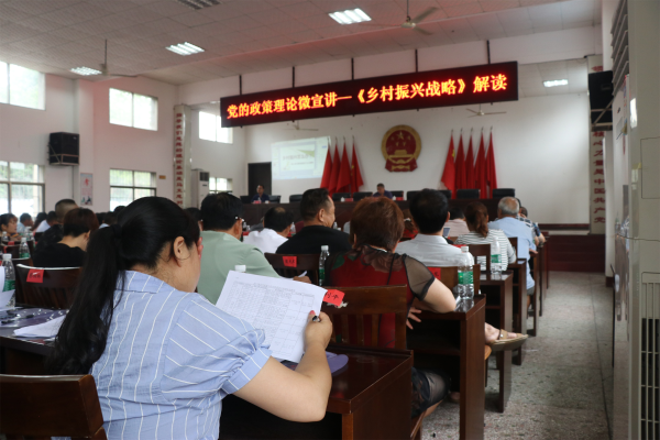 县委宣传部理教组组长张冕则以乡村振兴战略为主题作了微宣讲示范,他从乡村振兴战略提出的背景、目的和如何实现乡村振兴三个方面向在座代表全面解读乡村振兴战略。