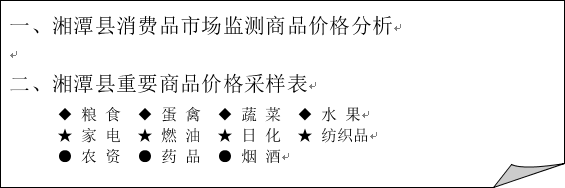 湘潭县重要商品价格采样表
